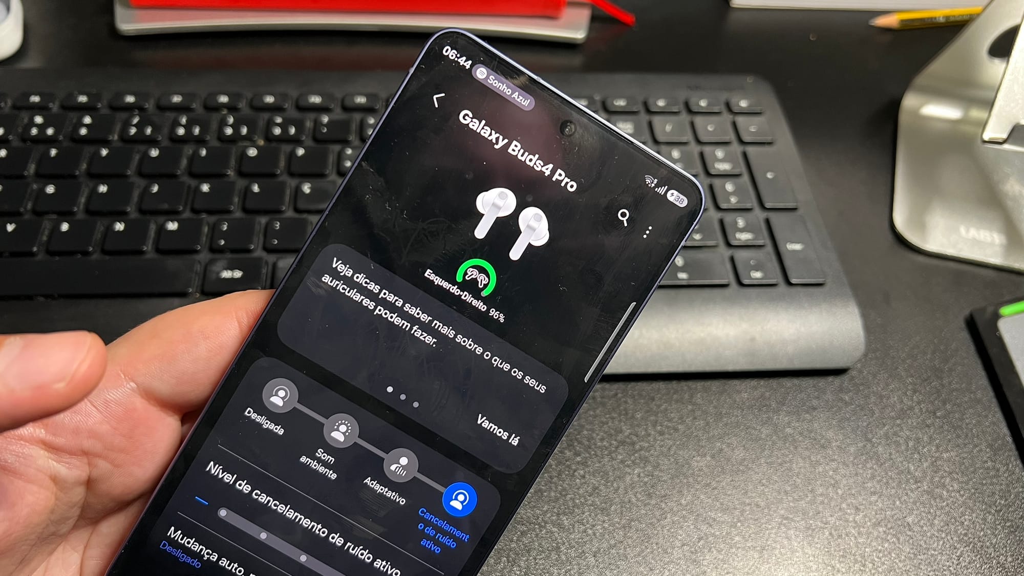 Além disso, por alguma razão, os Buds4 Pro estavam constantemente a desligar-se do iPhone, mesmo estando com a bateria total. Talvez algum bug da minha unidade de teste, mas frustrante na mesma.