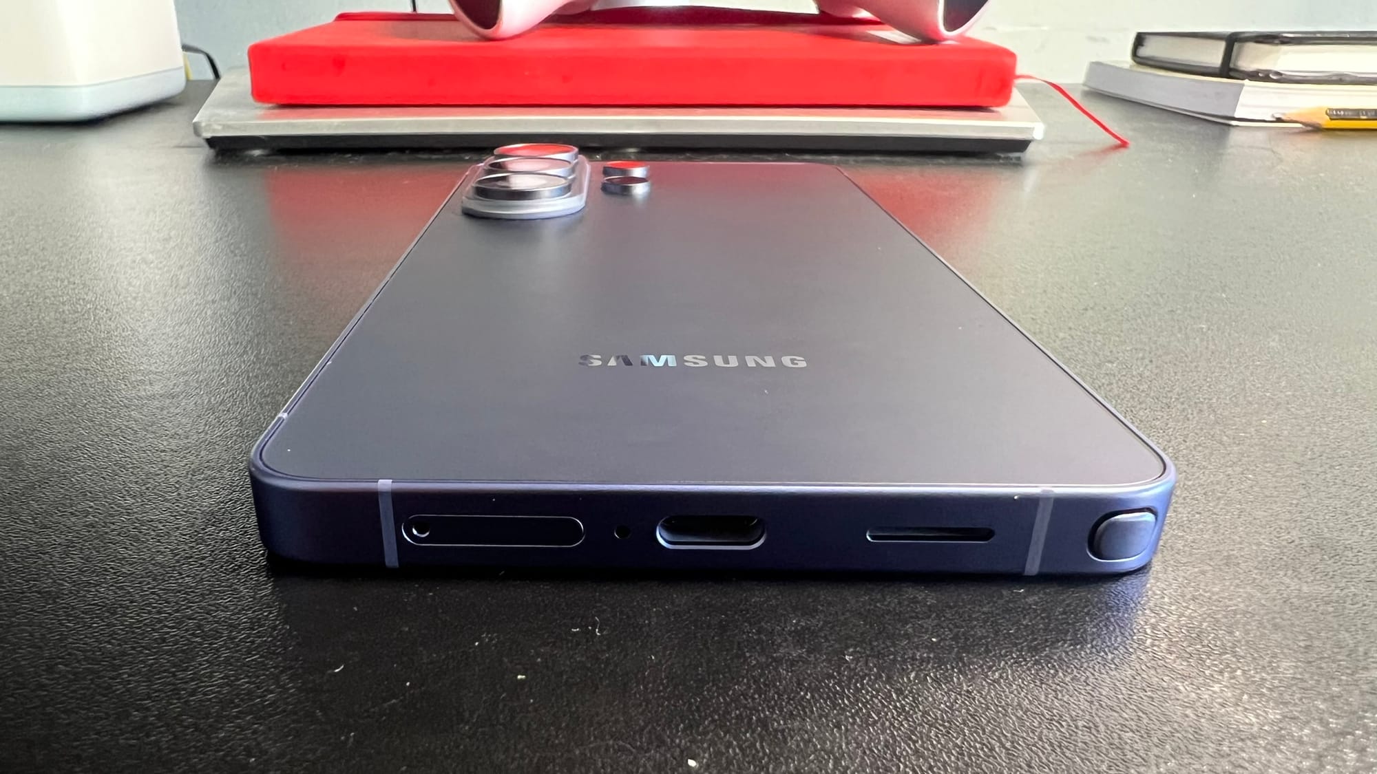 Sem uma capa, o Galaxy S26 Ultra vai abanar imenso quando pousado numa superfície plana. Para mim, isto impede por completo a sua utilização quando pousado, principalmente se quiser utilizar a sua S-Pen. Talvez seja um preço a pagar pelo módulo de câmaras, mas ainda assim, sinto que poderia ter havido mais cuidado neste sentido.