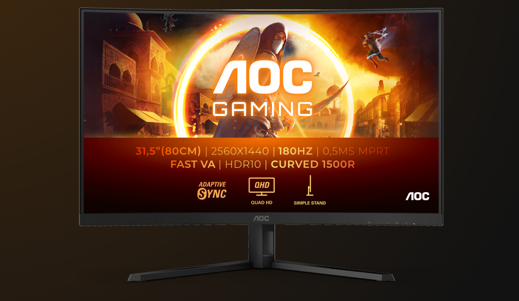 Monitor curvo QHD de 31,5 polegadas (1500R) com 180 Hz e 1 ms, que oferece imersão total em grandes formatos. O suporte HDR10 assegura excelente contraste e detalhe.
