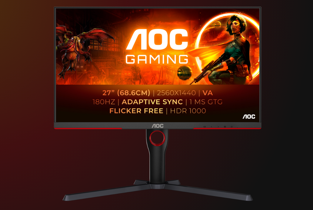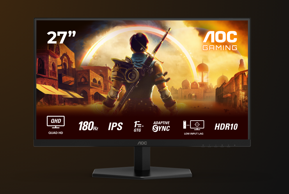 Um modelo QHD de 27 polegadas com 180 Hz, 1 ms GtG e compatibilidade G-SYNC, projetado para oferecer fluidez e cores vivas graças ao painel Fast IPS e ao suporte HDR10.