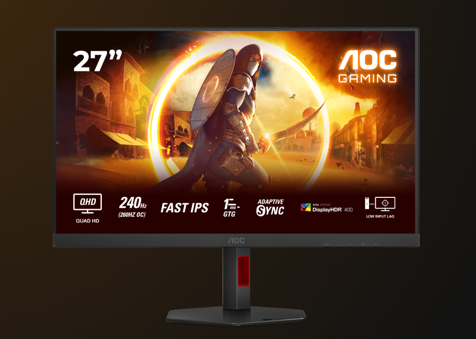 O equilíbrio entre resolução e velocidade: o painel Fast IPS de 27 polegadas oferece 240 Hz (até 260 Hz em overclock) e 1 ms GtG, além de VESA DisplayHDR 400, para cores mais realistas e contraste aprimorado.