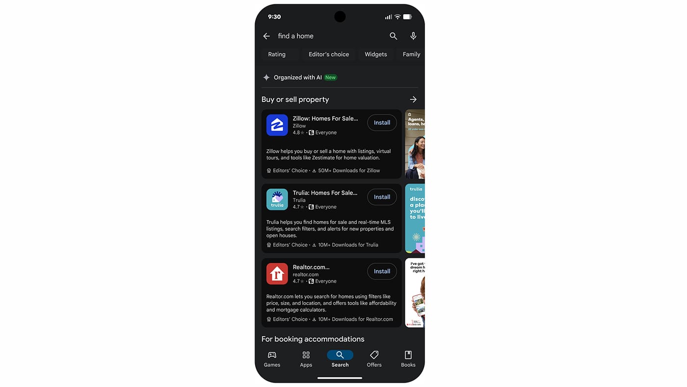 A aba "Apps" também recebe novidades, com secções dedicadas a entretenimento e momentos sazonais, exibindo filmes, séries, webcomics e tópicos de interesse de forma visual e personalizada. O Guided Search facilita encontrar aplicações por objetivo, organizando sugestões de forma inteligente com recurso a IA.