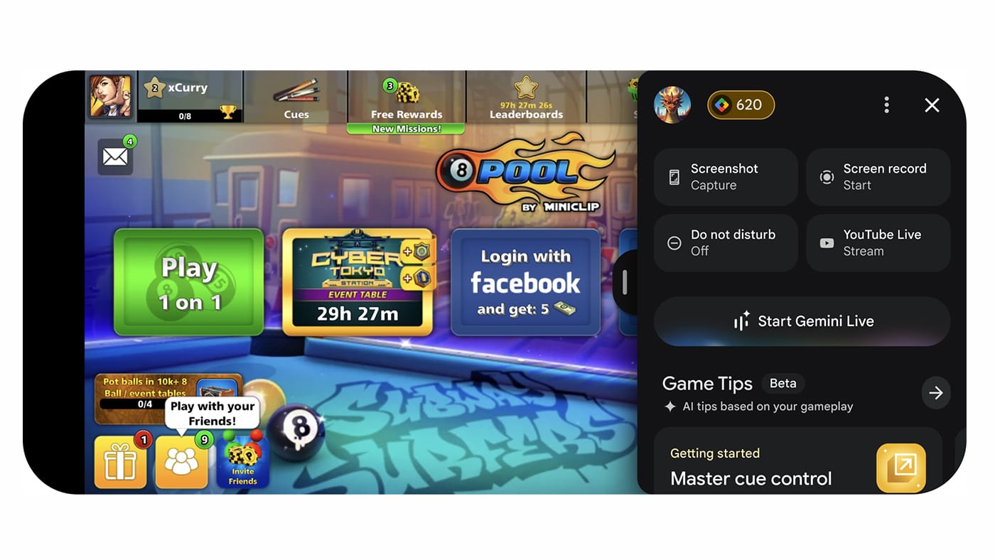 Outra novidade é o Play Games Sidekick, uma sobreposição dentro do jogo que oferece informações relevantes e acesso direto ao Gemini Live, um assistente de IA que fornece dicas e instruções em tempo real, sem ser necessário sair do jogo. A ferramenta recorre à partilha de ecrã para entender o contexto do jogador e oferecer orientação personalizada.