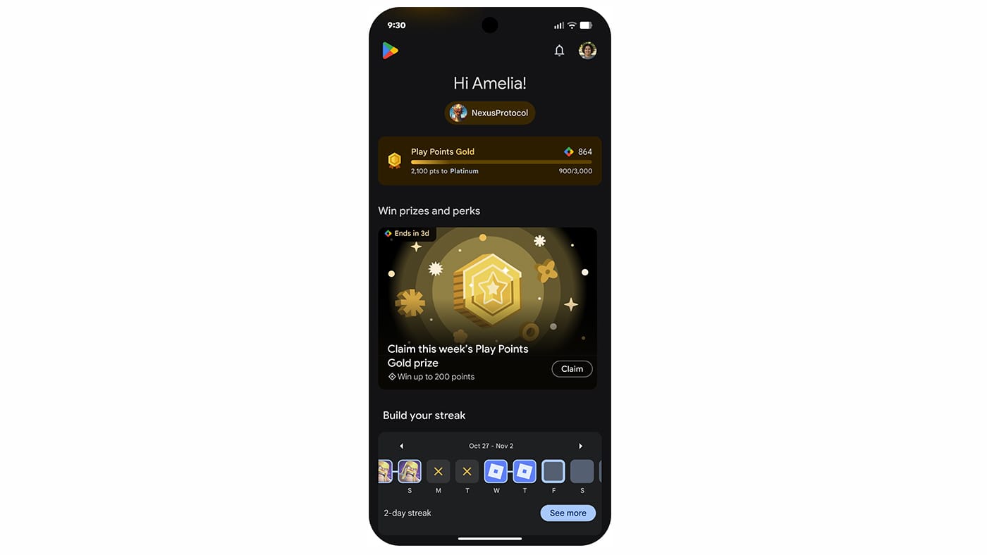 O Google Play Games passa a unir estatísticas, conquistas e recompensas em todos os dispositivos, permitindo aos utilizadores acompanhar o progresso em vários jogos a partir de um único perfil. É possível personalizar esse perfil com avatares gerados por inteligência artificial, criando uma identidade gamer única.