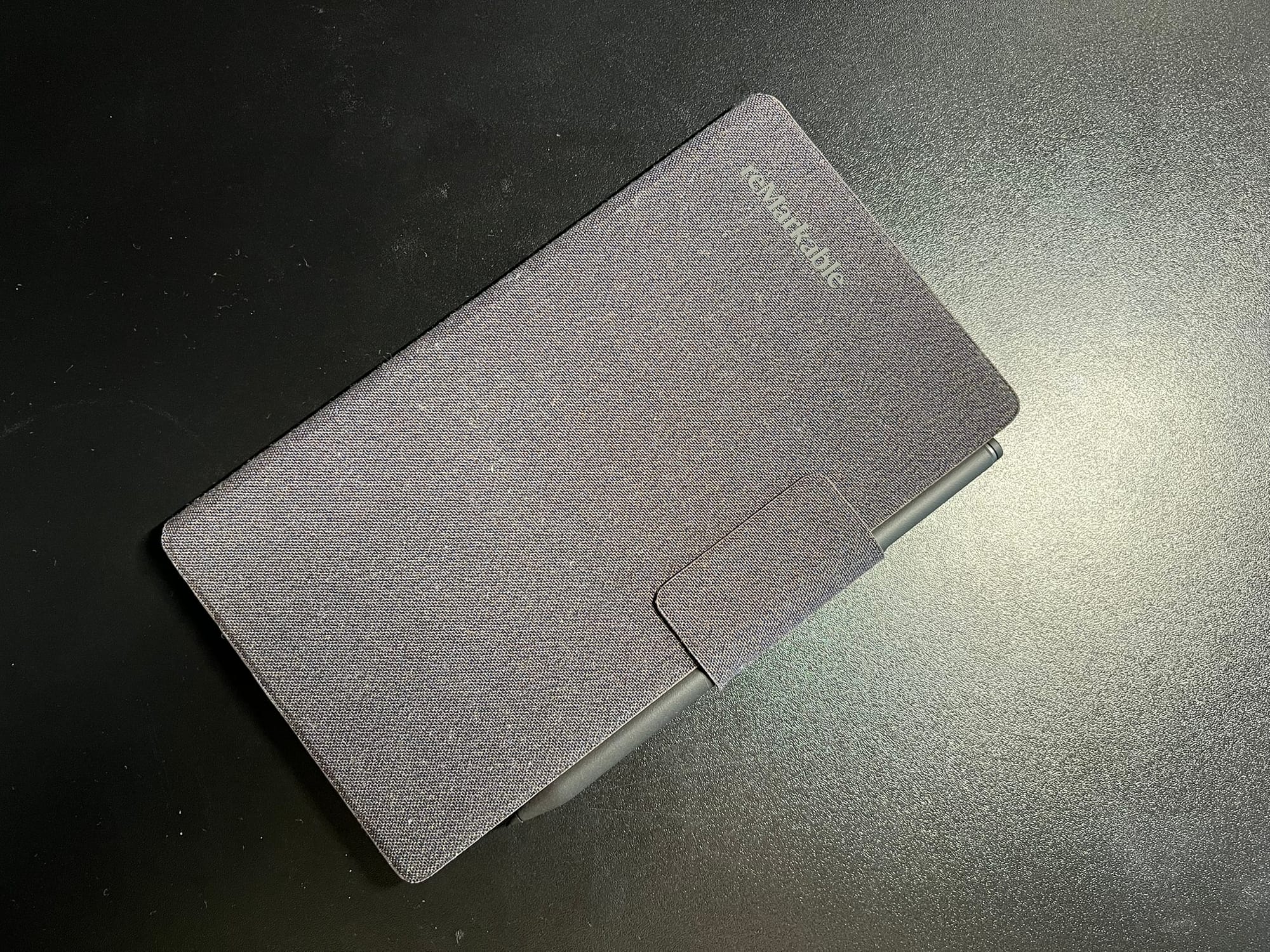 Como é costume, o reMarkable Paper Pro Move (479€) tem o acessório opcional da capa Folio Mosaic Weave (99€), numa textura estilo tecido rugoso bastante agradável. A nossa unidade veio com a caneta Model Marker Plus (50€).
